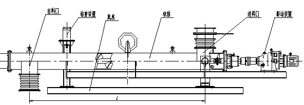 7、在卸料端蓋板上開設一防堵活門。發(fā)生堵塞時,由于物料堆積,頂開防堵門,同時通過行程開關切斷電源。