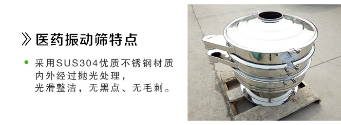 1、制藥振動(dòng)篩整機(jī)采用SUS304優(yōu)質(zhì)不銹鋼材質(zhì);